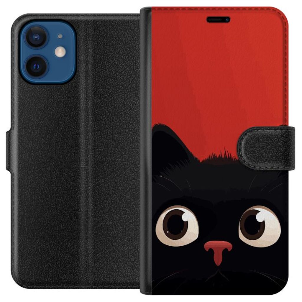 Apple iPhone 12 Sort Lommebokdeksel Busig Katt