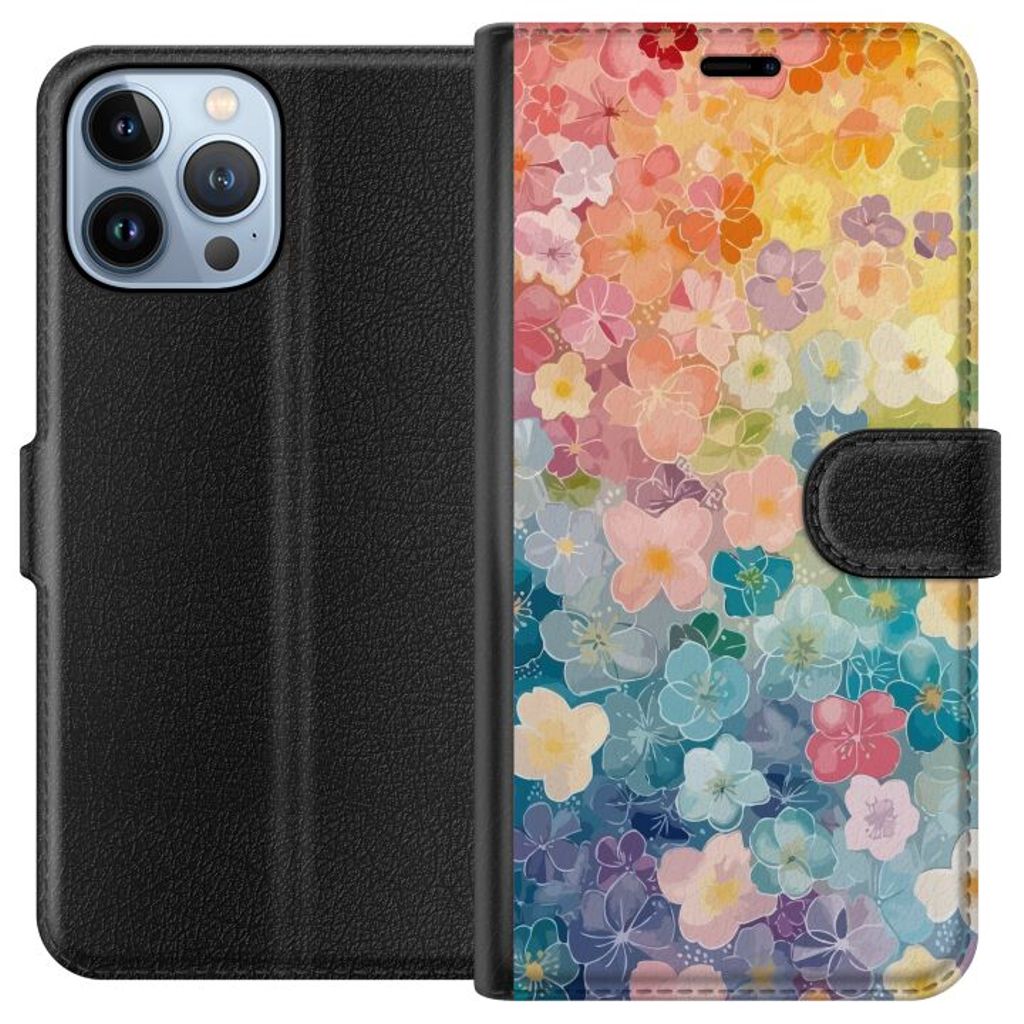 Apple iPhone 13 Pro Max Sort Lommebokdeksel Miniatyrblommor