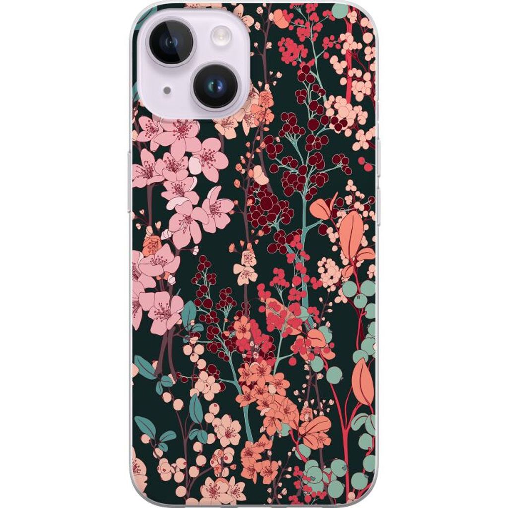 Apple iPhone 14 Gjennomsiktig Telefondeksel Blommor
