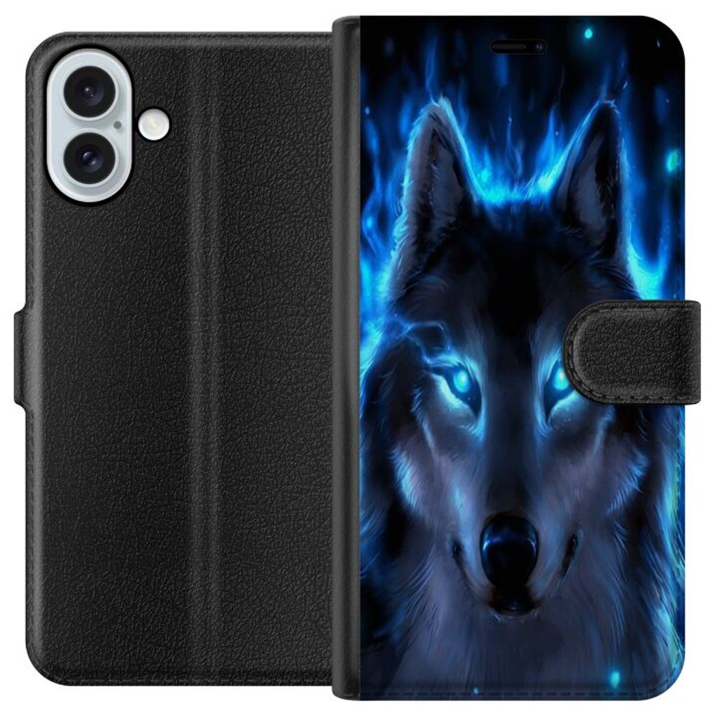 Apple iPhone 16 Plus Sort Lommebokdeksel Blå Varg