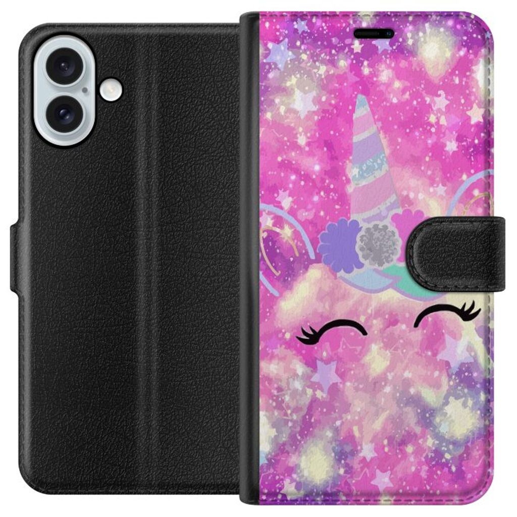 Apple iPhone 16 Plus Sort Lommebokdeksel Glad Enhörning