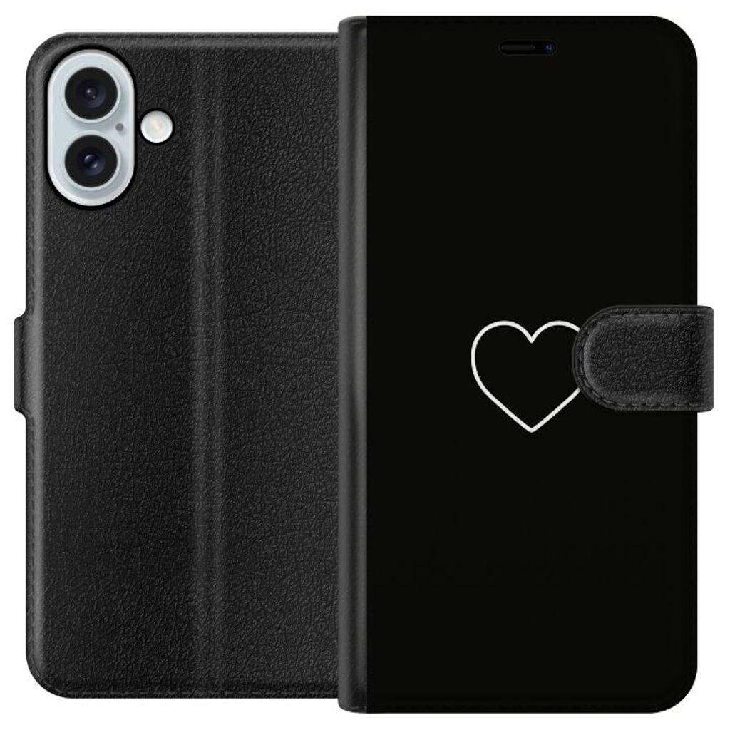 Apple iPhone 16 Plus Sort Lommebokdeksel Hjärta