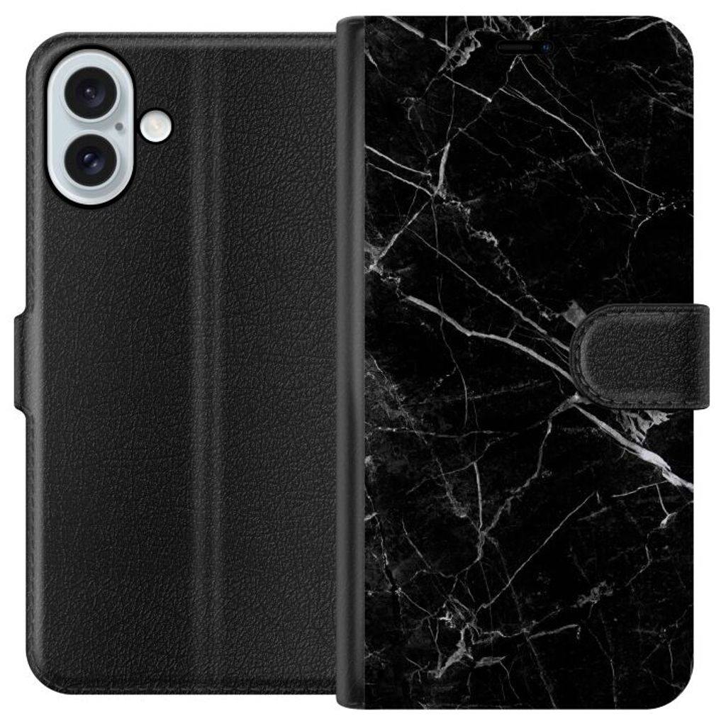Apple iPhone 16 Plus Sort Lommebokdeksel Svart marmor