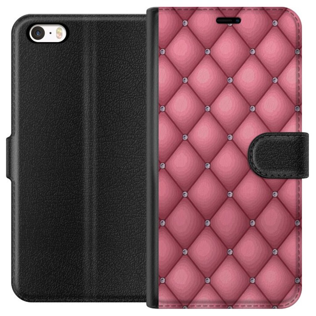 Apple iPhone SE (2016) Sort Lommebokdeksel Exklusivt Rosa Mönster
