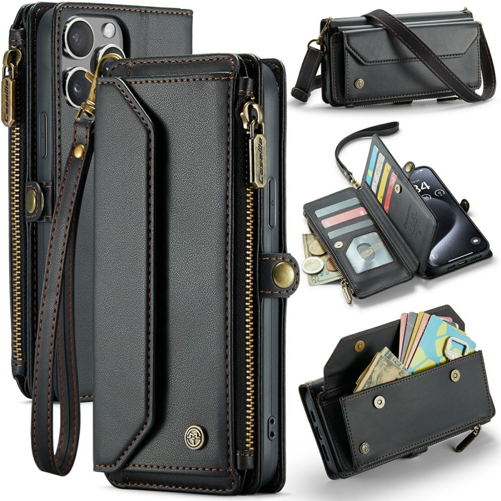 CASEME C36 Lommeboketui med Stropp og RFID for iPhone 16 Pro Max – Svart