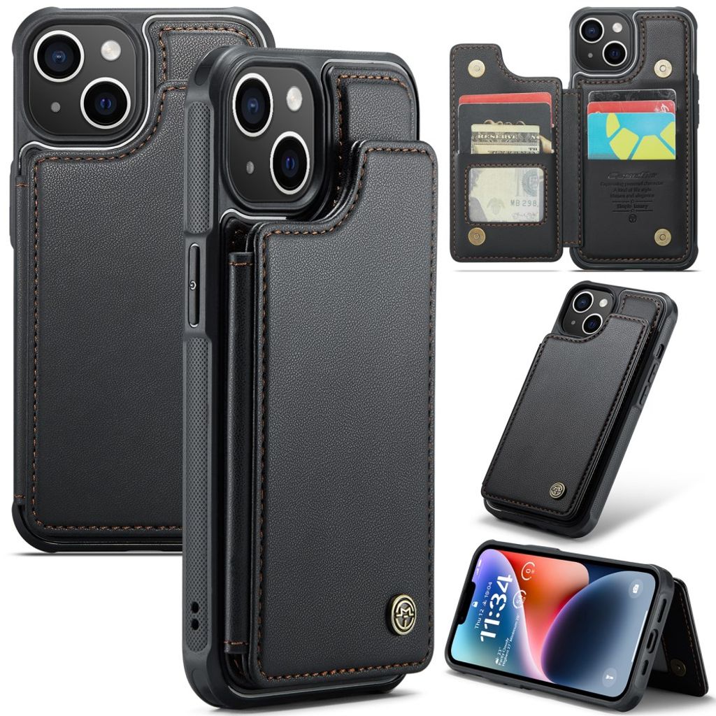CASEME iPhone 14 Plus Lommebokdeksel RFID-blokkerende Kortholder - Svart