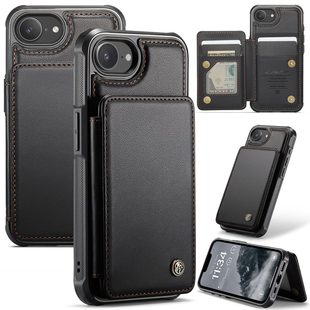 CASEME iPhone 16e Lommebokdeksel med RFID Kortholder og Stativ – Svart