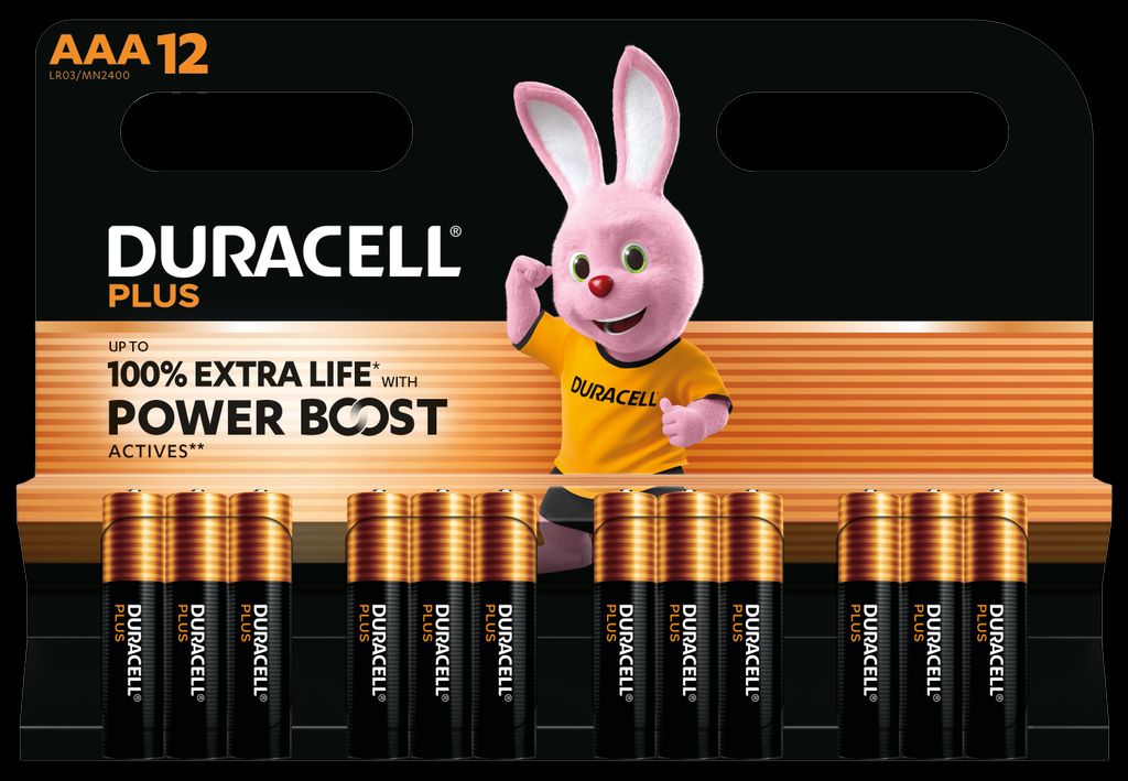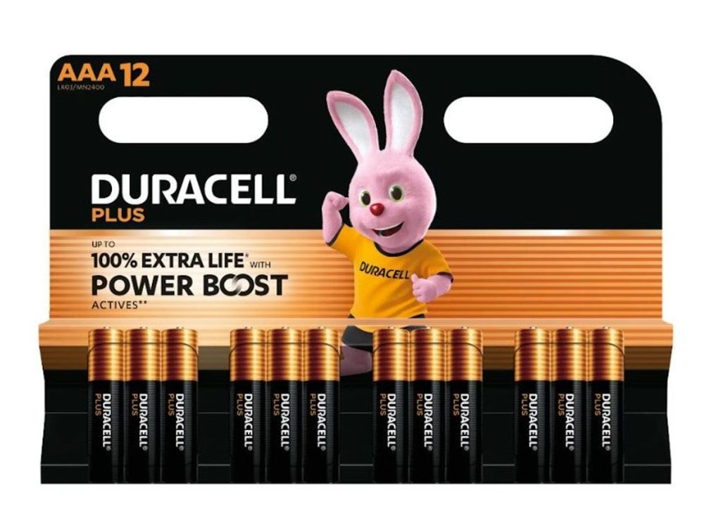 12 × Duracell Plus Power Boost AAA-batterier