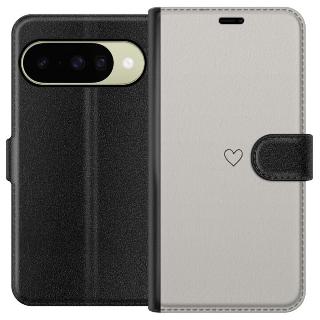 Google Pixel 10 Sort Lommebokdeksel Grått hjärta