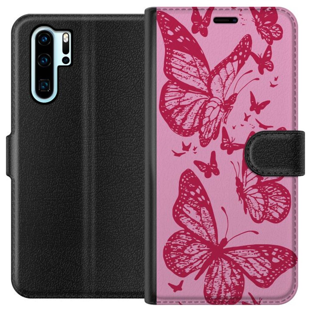 Huawei P30 Pro Sort Lommebokdeksel Fjärilar