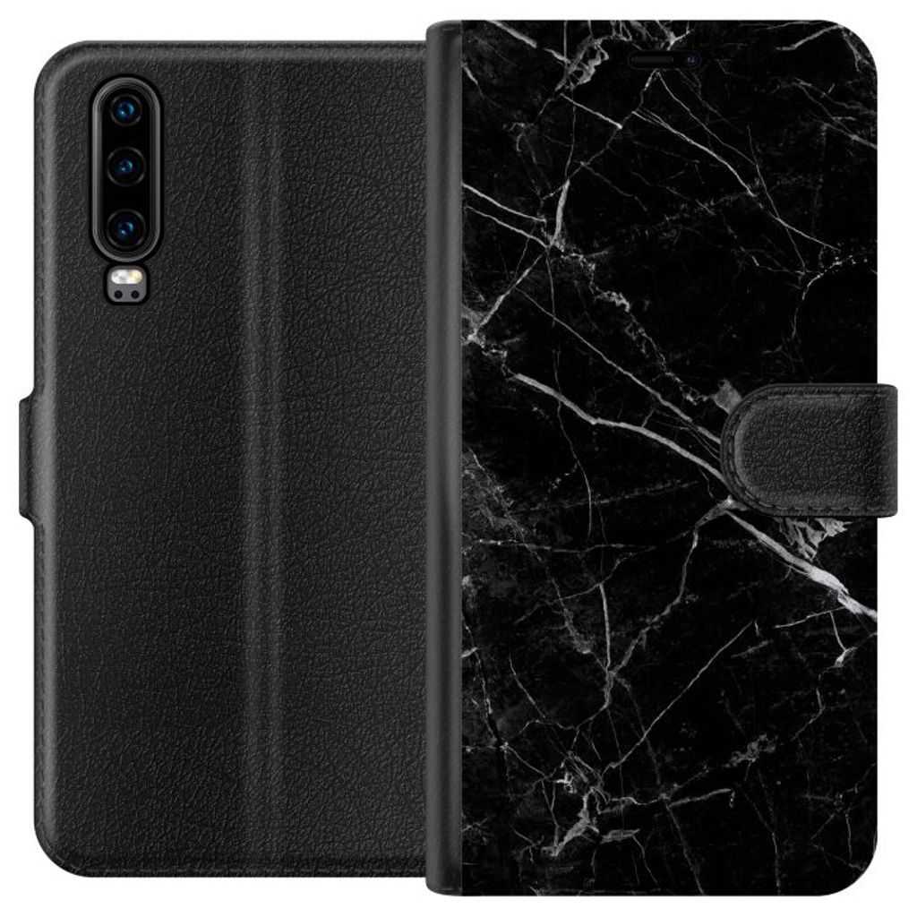 Huawei P30 Sort Lommebokdeksel Svart marmor