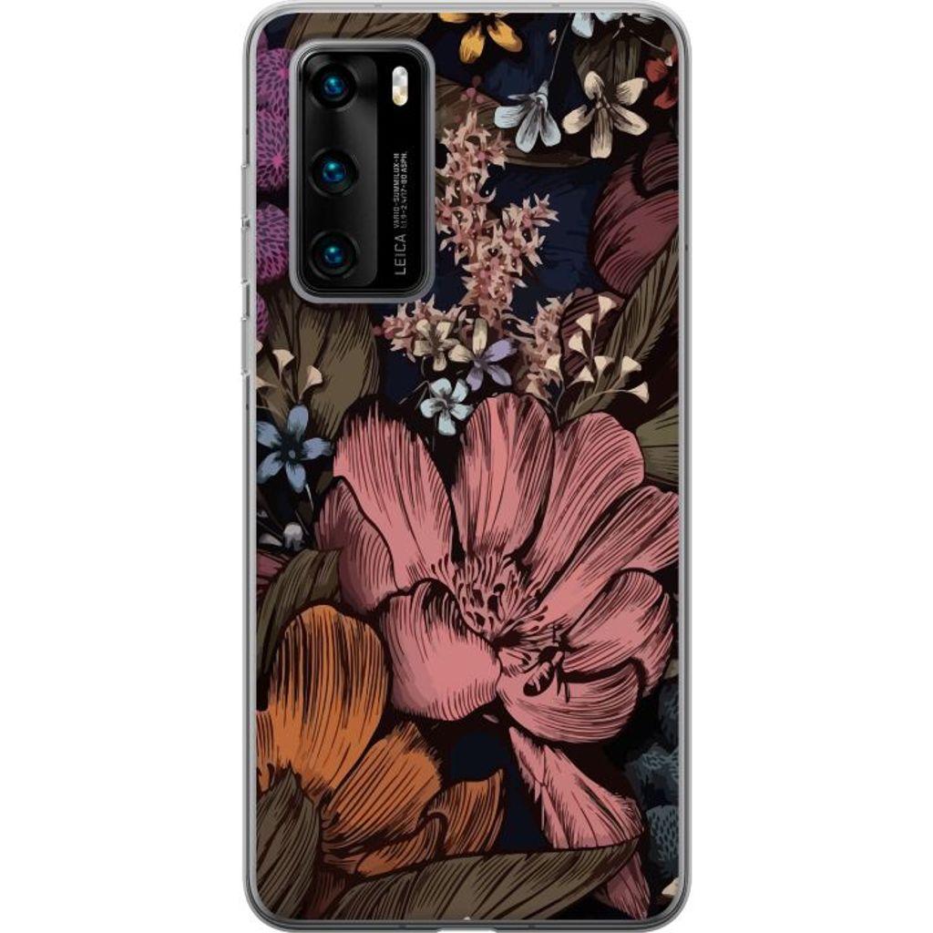 Huawei P40 Gjennomsiktig Telefondeksel Tecknade blommor