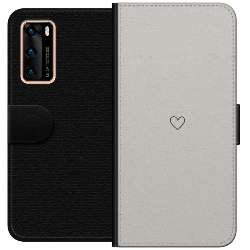 Huawei P40 Sort Lommebokdeksel Grått hjärta