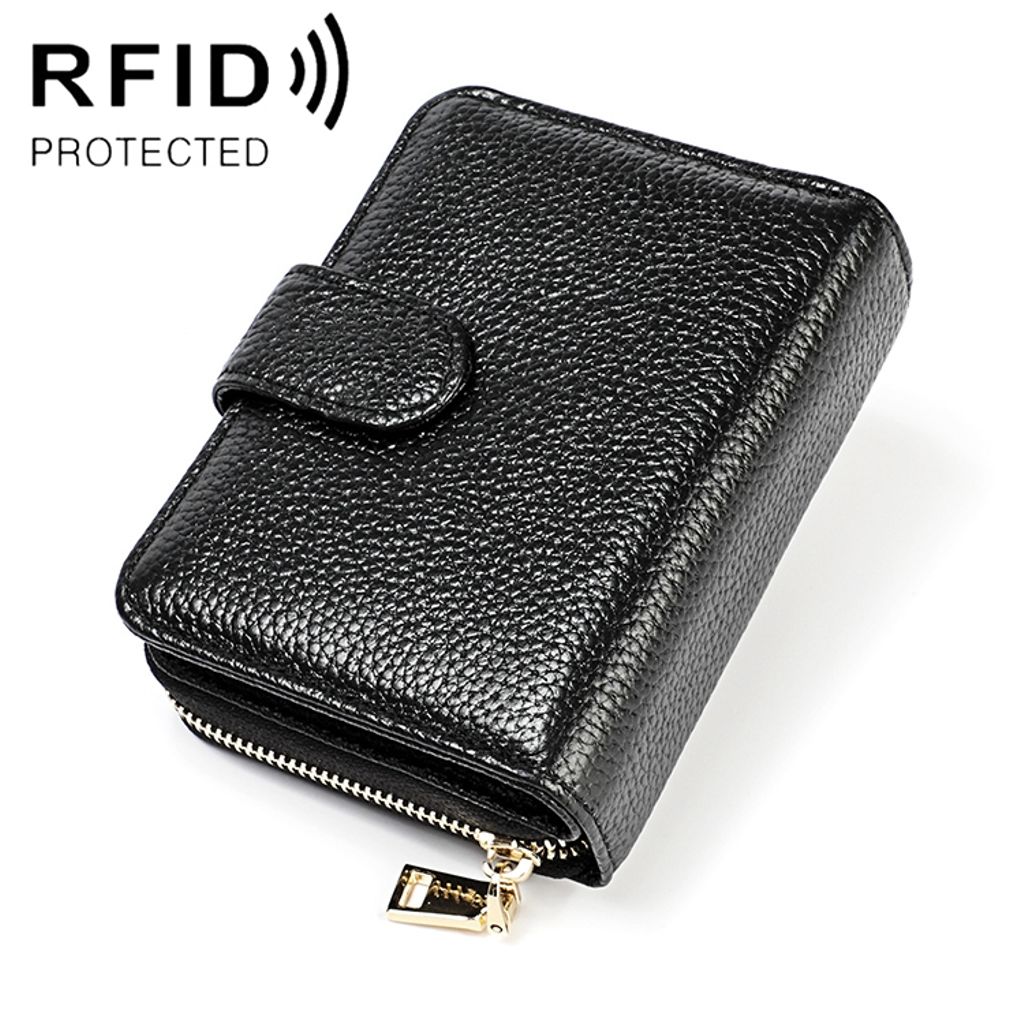 RFID-blokkerende glidelåslommebok i ekte skinn - svart