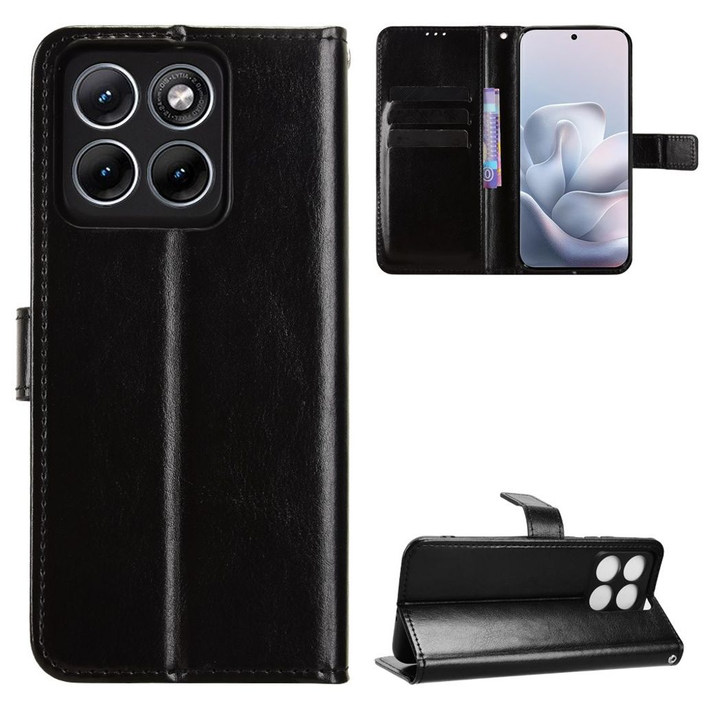 Gi din Motorola Edge 70 Fusion+ 5G eller Edge 70 Fusion 5G et stilig og praktisk uttrykk med dette sorte lommeboketuiet laget av slitesterkt PU-lær. Etuiet har en moderne overflate med elegant Crazy Horse-struktur, og en avtagbar håndstropp for enkel og trygg bæring i hverdagen.