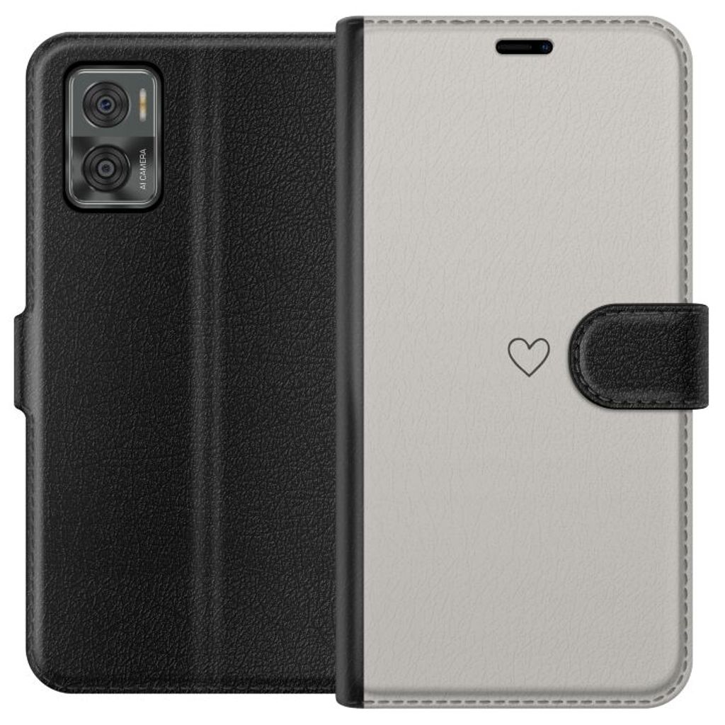 Motorola Moto E22i Sort Lommebokdeksel Grått hjärta