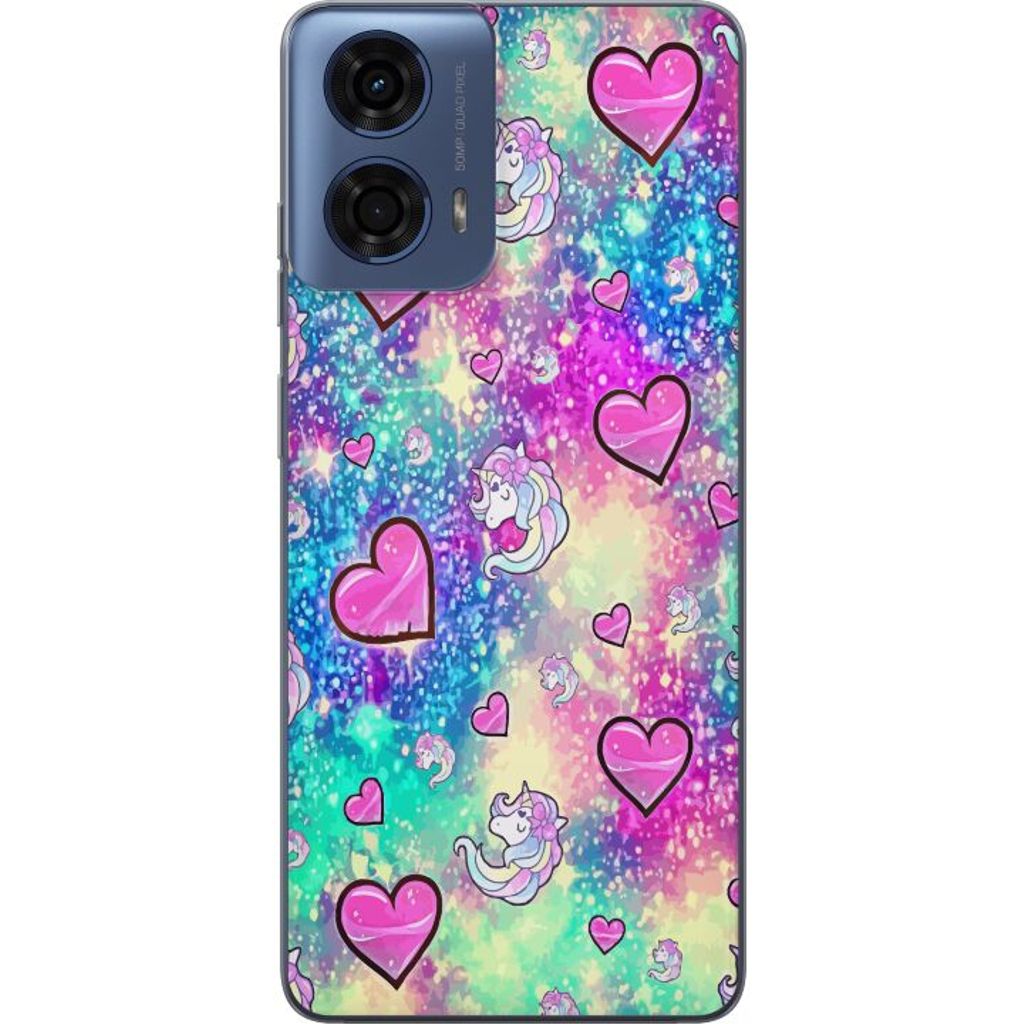 Motorola Moto G04 Gjennomsiktig Telefondeksel Enhörning och hjärtan