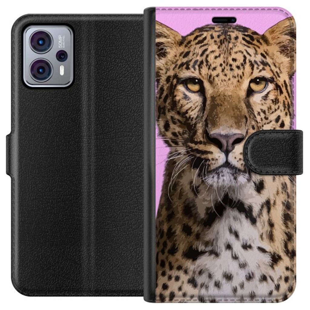Motorola Moto G23 Sort Lommebokdeksel Leopard