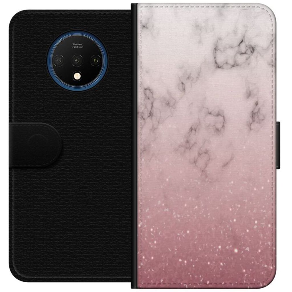 OnePlus 7T Sort Lommebokdeksel Glitter och marmor