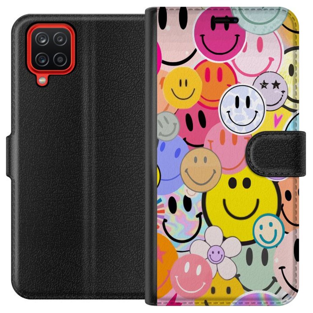 Samsung Galaxy A12 Sort Lommebokdeksel Leende Ansikten
