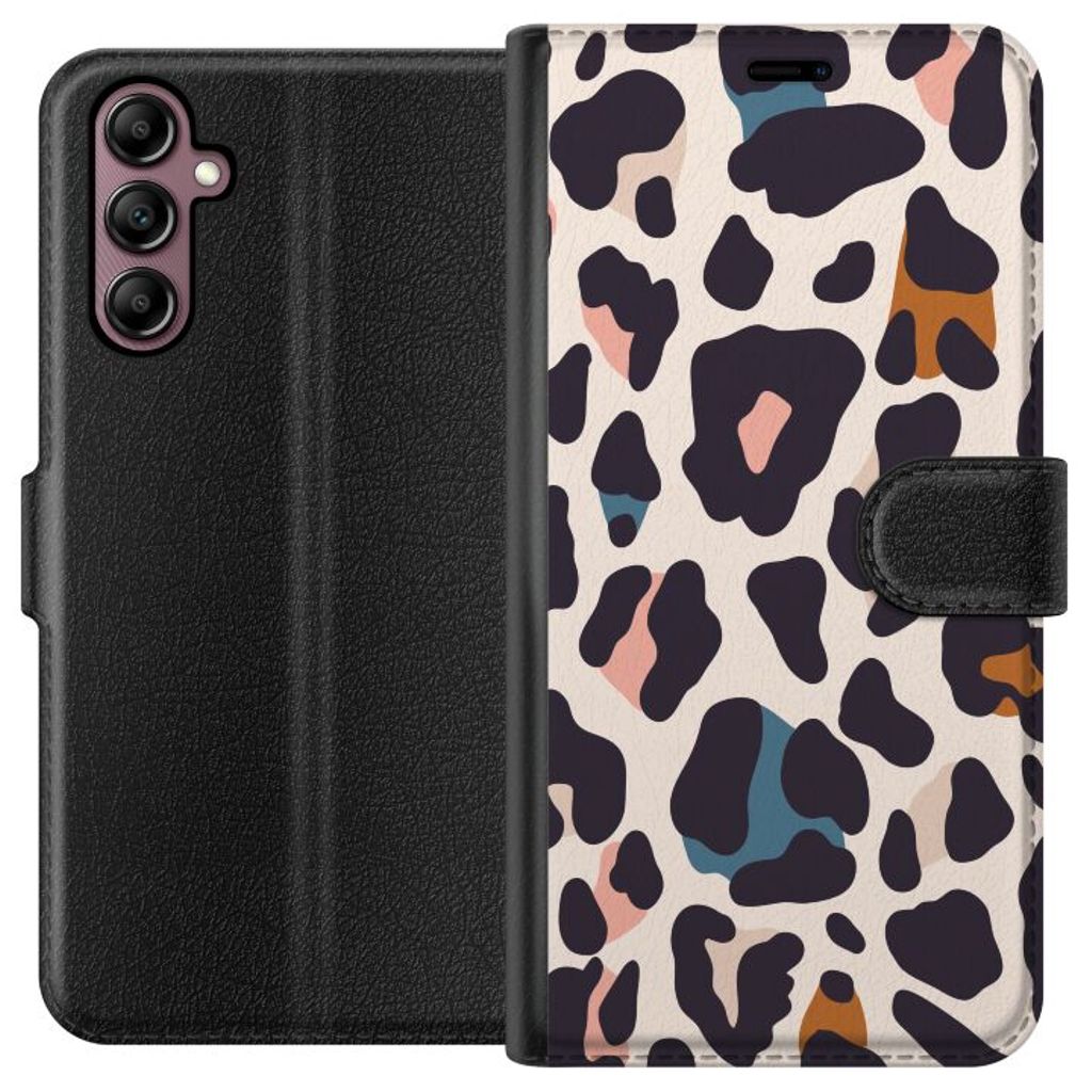 Samsung Galaxy A14 5G Sort Lommebokdeksel Leopardmönster
