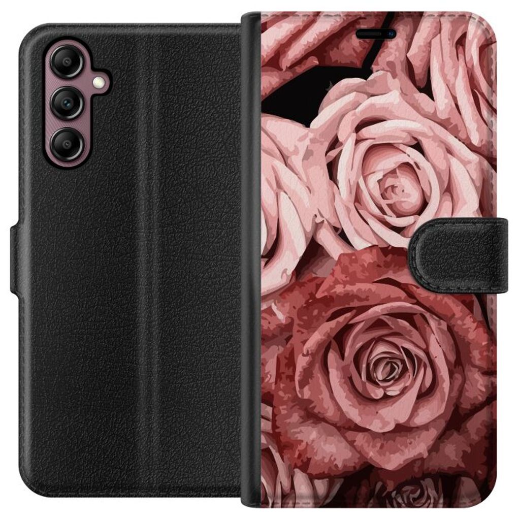 Samsung Galaxy A14 5G Sort Lommebokdeksel Rosmönster