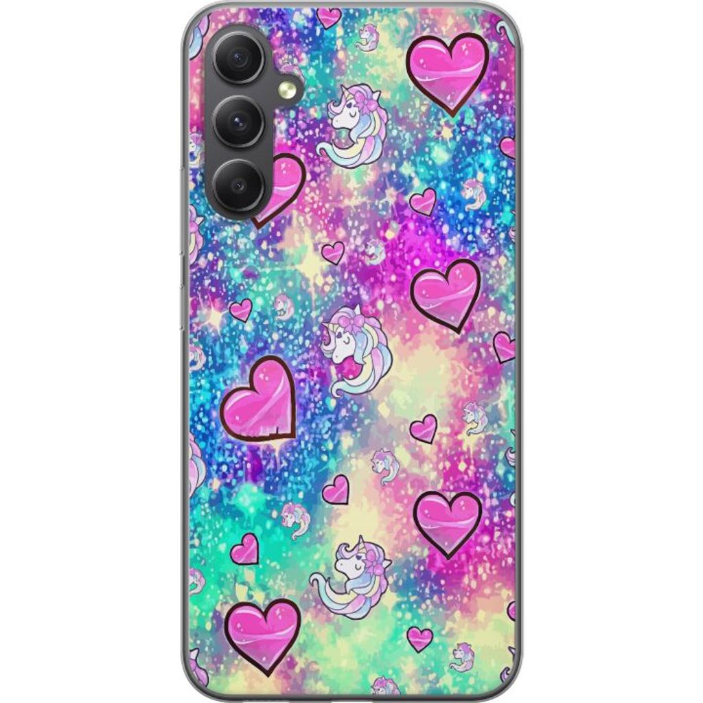 Samsung Galaxy A15 5G Gjennomsiktig Telefondeksel Enhörning och hjärtan