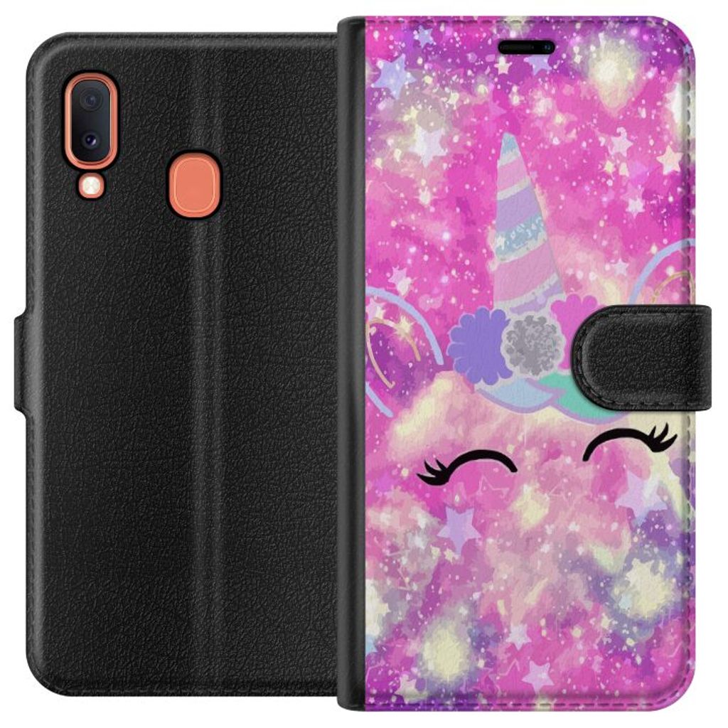 Samsung Galaxy A20e Sort Lommebokdeksel Glad Enhörning