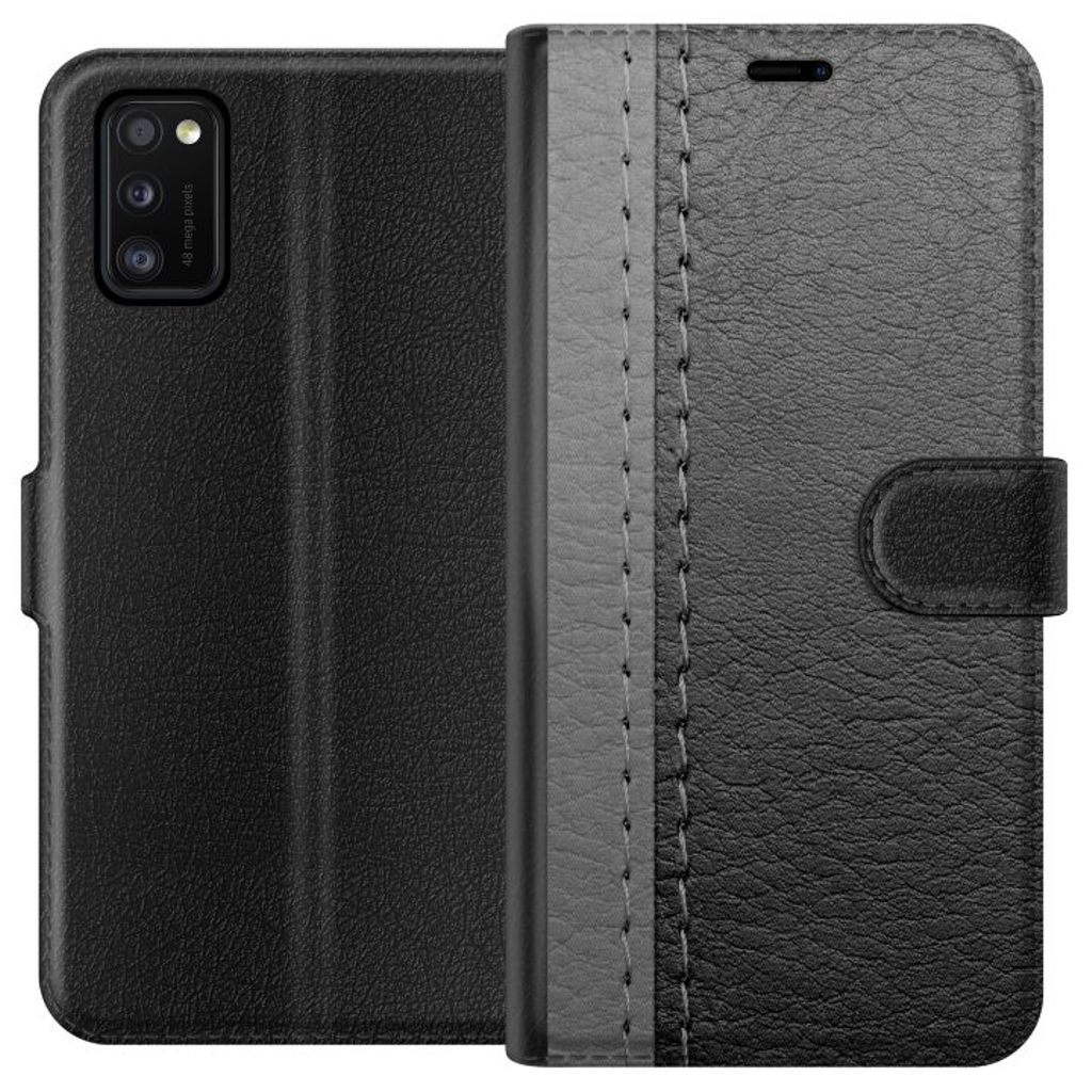 Samsung Galaxy A41 Sort Lommebokdeksel Grått Fake Läder