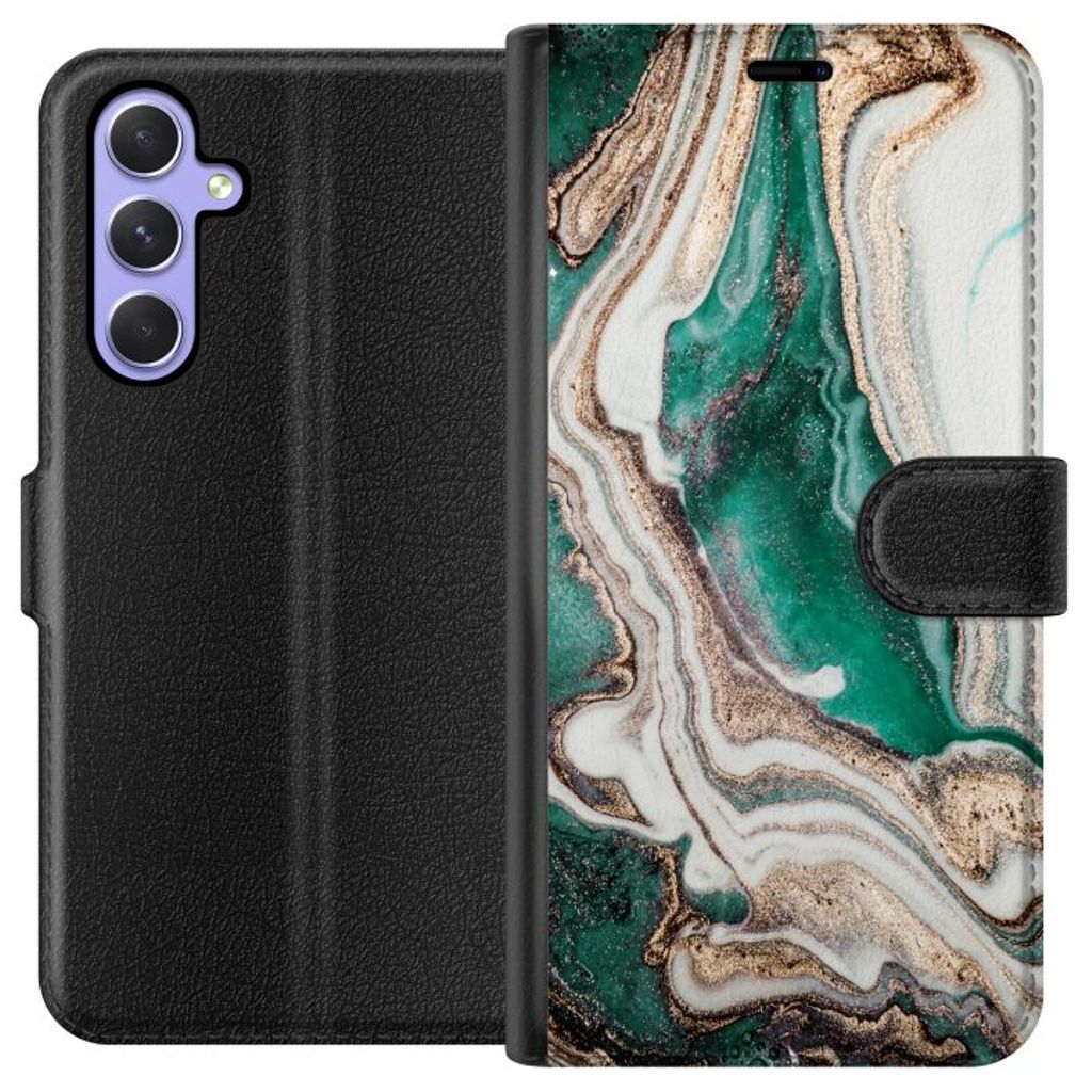Samsung Galaxy A54 Sort Lommebokdeksel Grön / Guld marmor