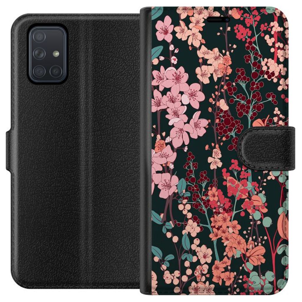Samsung Galaxy A71 Sort Lommebokdeksel Blommor