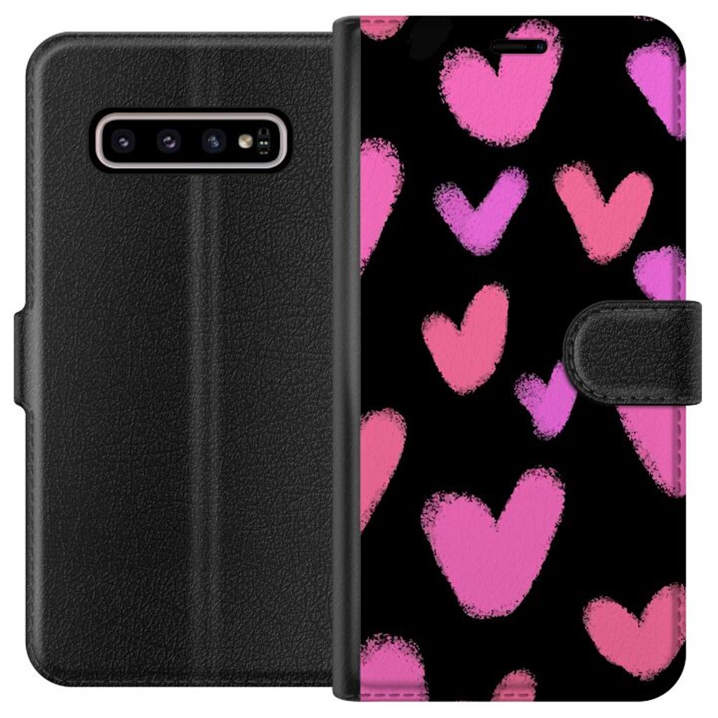 Samsung Galaxy S10+ Sort Lommebokdeksel Hjärtan Stora