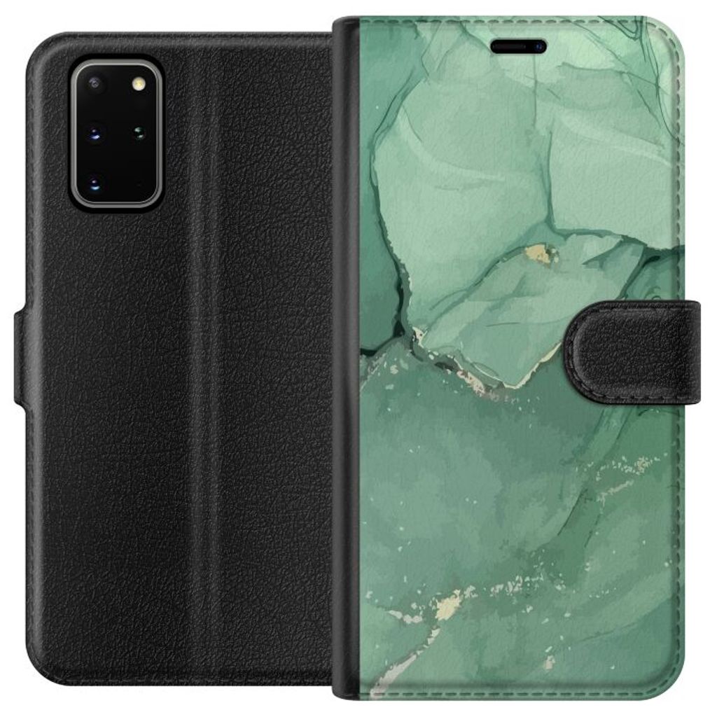 Samsung Galaxy S20+ Sort Lommebokdeksel Grön Marmor