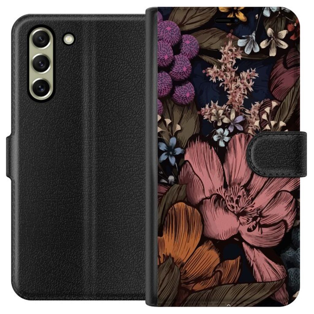 Samsung Galaxy S21 FE 5G Sort Lommebokdeksel Tecknade blommor