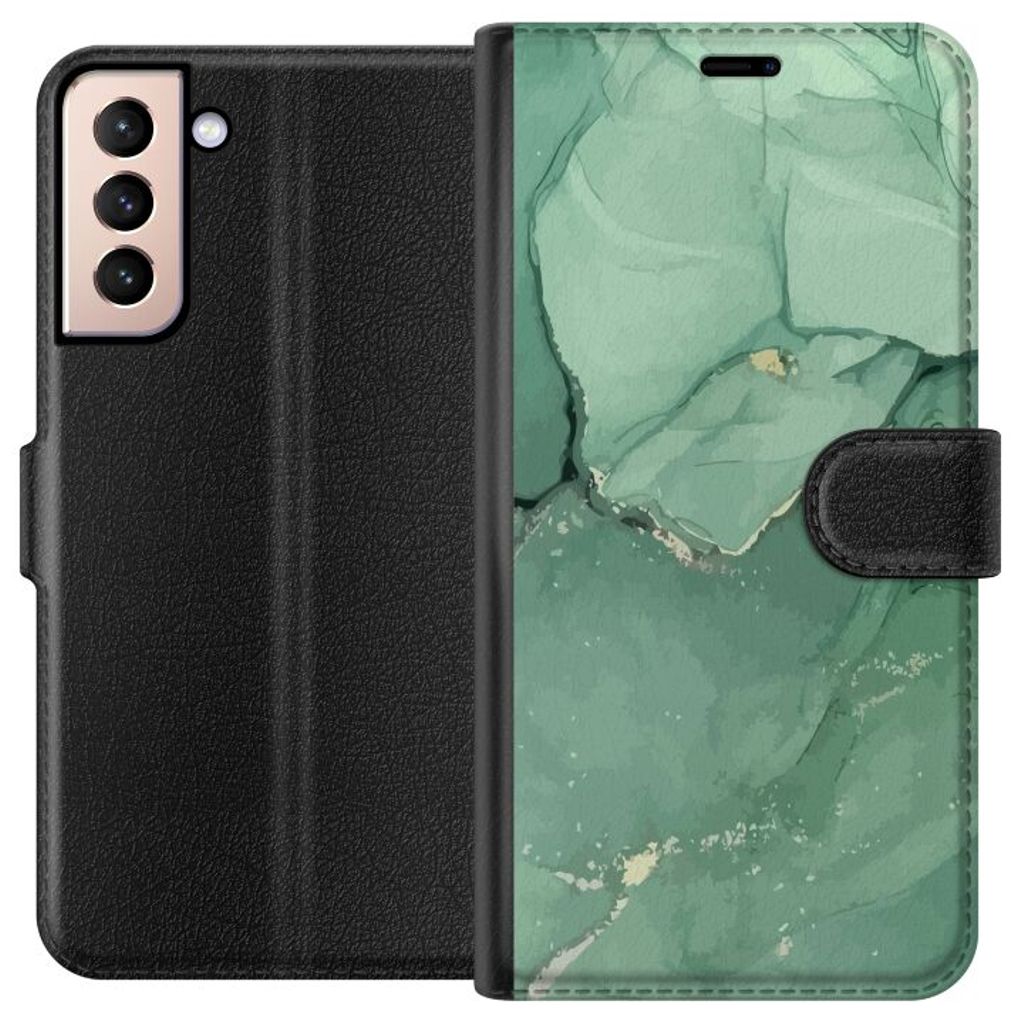 Samsung Galaxy S21 Sort Lommebokdeksel Grön Marmor
