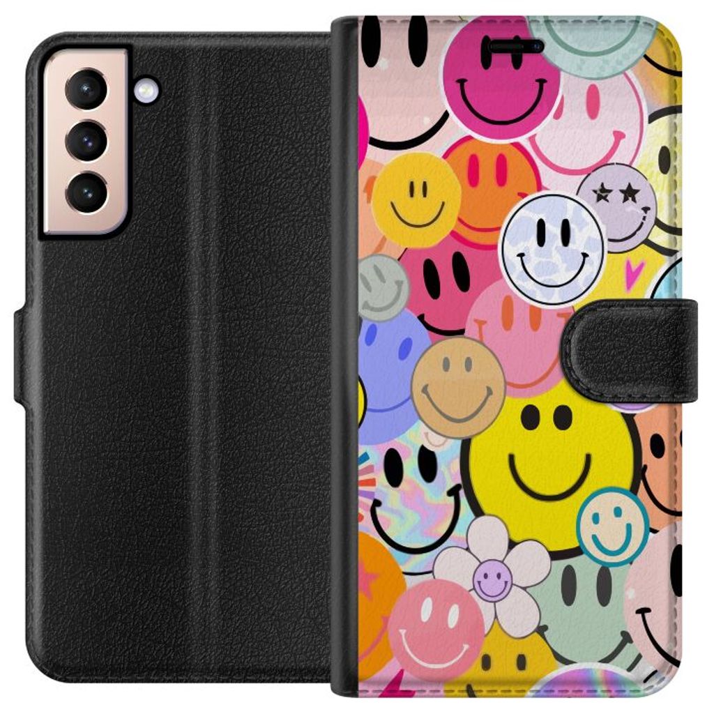 Samsung Galaxy S21 Sort Lommebokdeksel Leende Ansikten