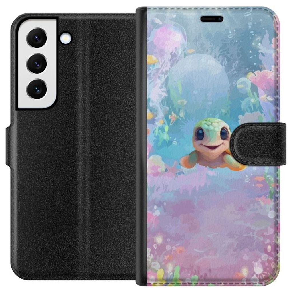 Samsung Galaxy S22 5G Sort Lommebokdeksel Glad Sköldpadda
