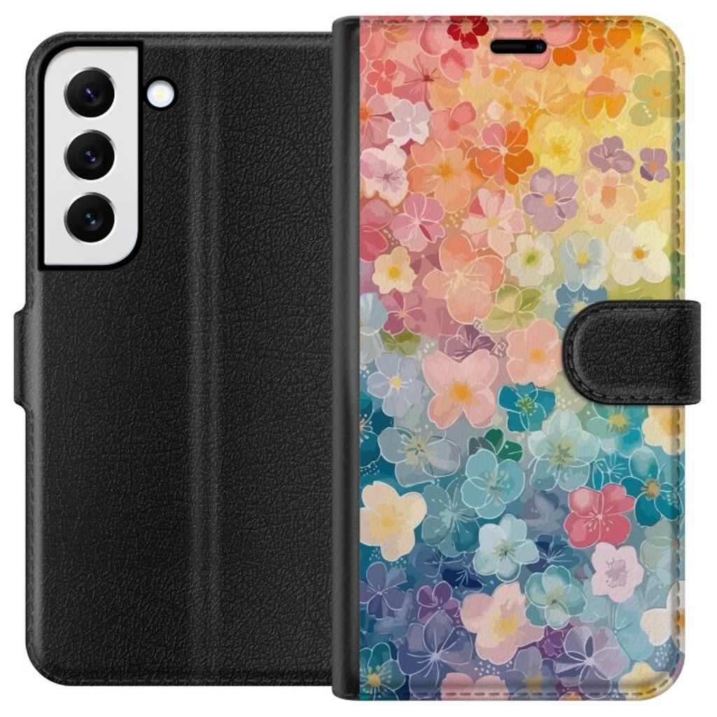Samsung Galaxy S22+ 5G Sort Lommebokdeksel Miniatyrblommor