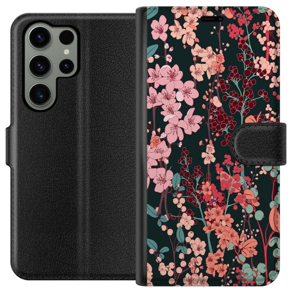 Samsung Galaxy S23 Ultra Sort Lommebokdeksel Blommor