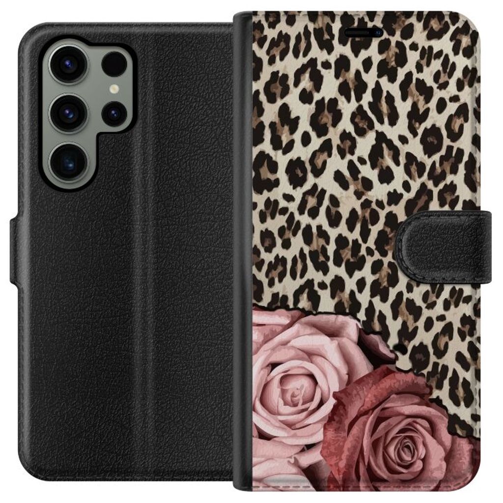 Samsung Galaxy S23 Ultra Sort Lommebokdeksel Leopardrosor