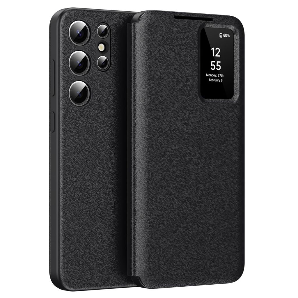 Samsung Galaxy S25 Ultra etui med visningsvindu og kortholder - svart