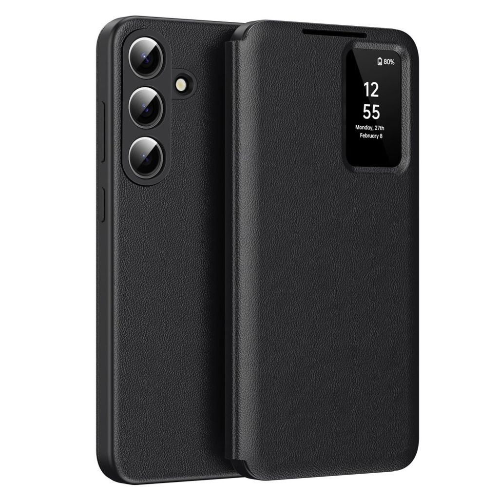 Gi Samsung Galaxy S26 optimal beskyttelse og funksjonalitet med et stilfullt og smart etui. Dette etuiet i ekte skinn har innebygd kortholder og praktisk visningsvindu slik at du enkelt holder oversikt over varsler, samt svarer på anrop uten å åpne dekselet.