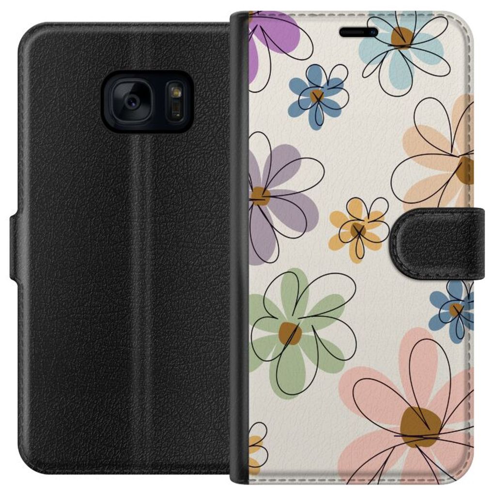 Samsung Galaxy S7 Sort Lommebokdeksel Tecknade Blommor