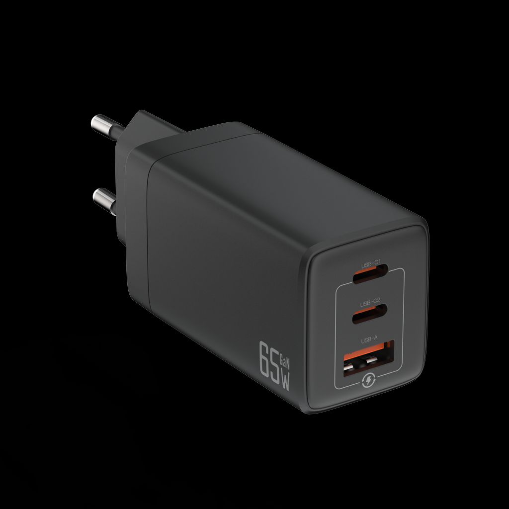 65W høyeffektslader. Den har tre porter for hurtiglading av tre enheter samtidig. Den er kompatibel med diverse bærbare datamaskiner, nettbrett og telefoner. Superhurtige ladeprotokoller PD3.0, PPS, QC3.0, Samsung AFC og Huawei FCP/SCP støttes. Den lille størrelsen og den sammenleggbare kontakten gjør den superenkel å bære. Den bruker det mest avanserte, høyt integrerte halvledermaterialet – GaN-brikken, som sikrer stabil lading med mindre varme. CCC/CE/FCC/RoHS-sertifiseringer er godkjent for å garantere ladesikkerhet.