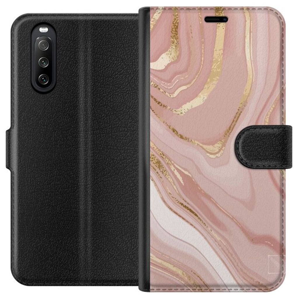 Sony Xperia 10 III Sort Lommebokdeksel Ljusrosa marmor