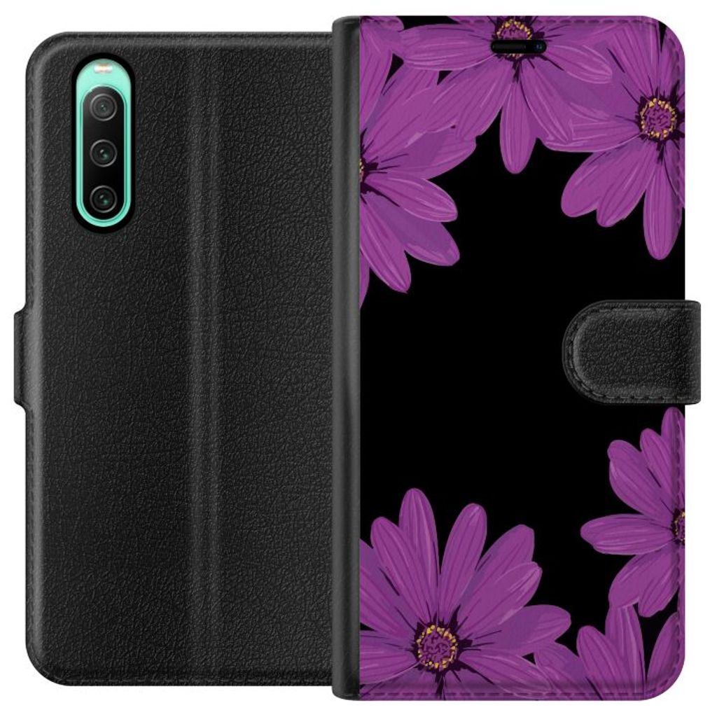 Sony Xperia 10 IV Sort Lommebokdeksel Blomster