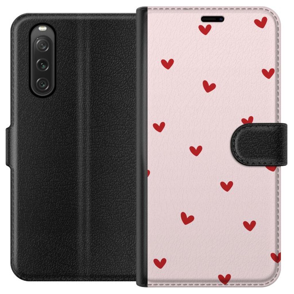 -Spesielt designet for Xperia 10 V lommebokdeksel. Estetisk og funksjonell: Små Hjärtan-mønster med en elegant fargekombinasjon.