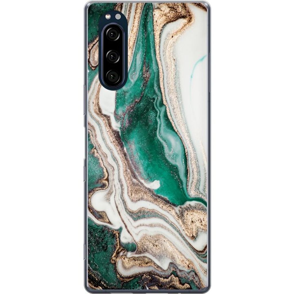 Sony Xperia 5 Gjennomsiktig Telefondeksel Grön / Guld marmor