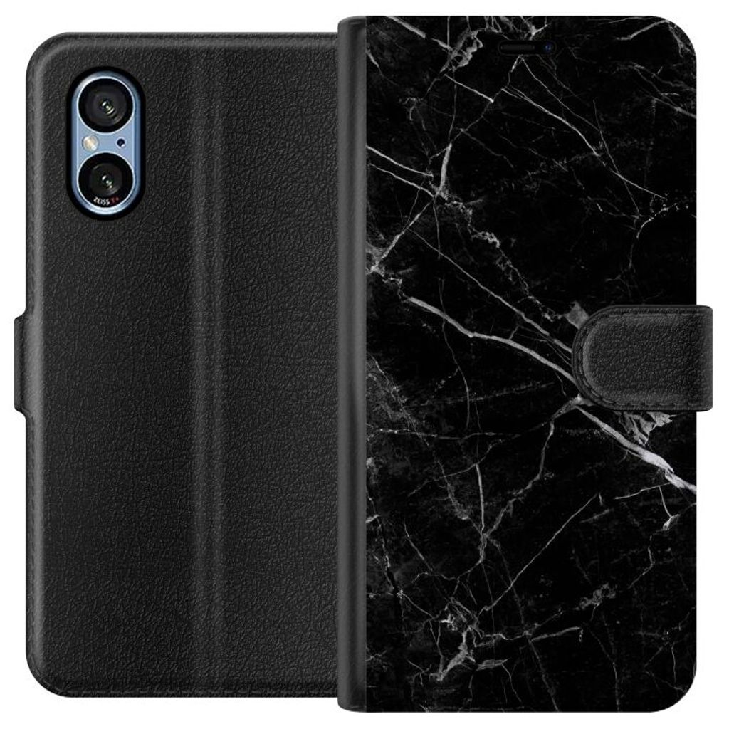 Sony Xperia 5 V Sort Lommebokdeksel Svart marmor