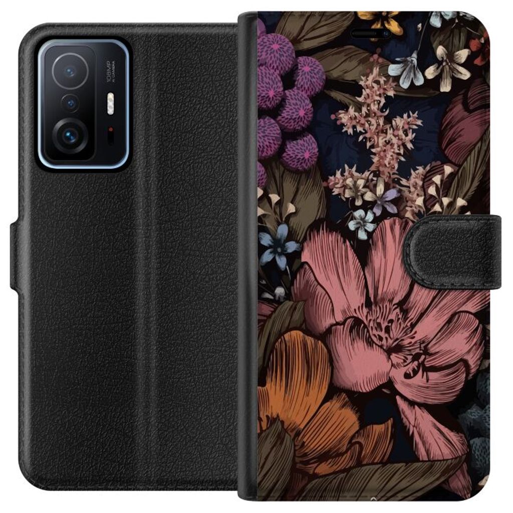 Xiaomi 11T Sort Lommebokdeksel Tecknade blommor